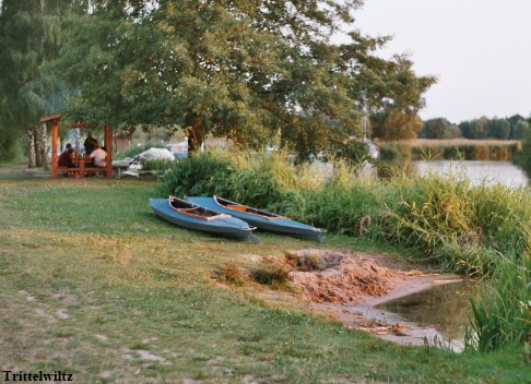 Faltboote und Kanus. Allerdings fahren wir gegen den Strom (!?) und sind recht geschafft. Der zum Wasser- kochen vorgesehene Benzinkocher macht hier seinen vorerst letzten Schnauf. Es könnte kritisch